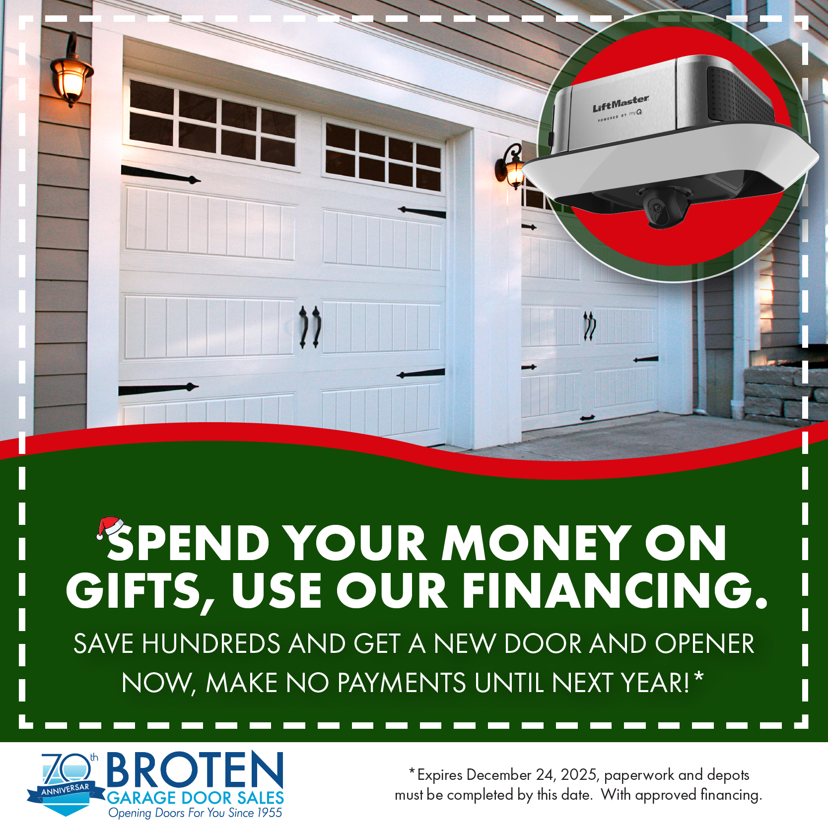 There has never been a better time to get a new garage door from Broten. Call now to schedule your appointment and take advantage of our great end of year savings.